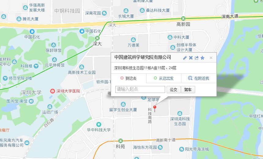 中國建筑科學(xué)研究院有限公司深圳分公司電話(TEL):0755-26727000(總機(jī))傳真(FAX):0755-26727878 郵編:518057地址:深圳市南山區(qū)深圳灣科技生態(tài)園11棟A座15層、24層E-mail:yuanban@cabr-sz.com