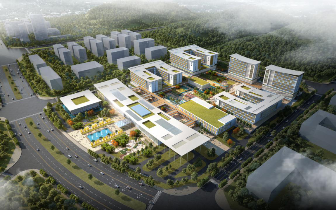 本項目總體設(shè)計理念以“嶺南聚落,山水醫(yī)城”為設(shè)計思路,彰顯嶺南聚落、濱海之水的地域特色,構(gòu)建門診街和住院街的空間結(jié)構(gòu);引入生態(tài)節(jié)能技術(shù),打造“放眼亭——花溪疊瀑——碧波觀景——竹香廊——嘯月臺——芍藥坡——紫藤塢”等一系列主題園景,用醫(yī)養(yǎng)新城與水源聚落進行布局上的呼應(yīng)與尺度上的對比,突出地域人文特點,展現(xiàn)現(xiàn)代醫(yī)療產(chǎn)業(yè)的人文關(guān)懷。