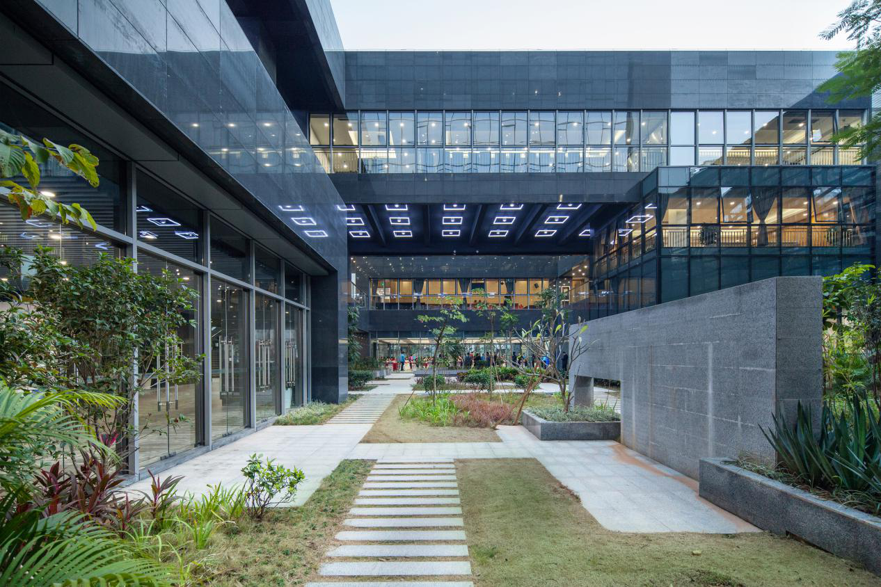 項目為原址改擴建工程,用地局促狹長,周邊均為已建成公建和成熟住區(qū),設計中如何合理布置功能與流線成為設計的核心。經(jīng)過項目組深入研究與探索實踐,最終項目呈現(xiàn)出內(nèi)外人流分區(qū)明確、相互不受干擾的流線,并且運用內(nèi)部園林體系化解了用地緊張局促功能復雜多樣的矛盾,同時發(fā)揮中國建研院綜合技術(shù)優(yōu)勢,創(chuàng)造性地應用新材料、新技術(shù),將功能與外形完美結(jié)合在建筑中。