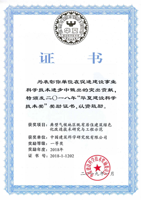 中國建筑科學(xué)研究院有限公司深圳分公司與上海市建筑科學(xué)研究院(集團(tuán))有限公司、哈爾濱工業(yè)大學(xué)共同完成的“十二五”國家科技支撐計(jì)劃課題《典型氣候地區(qū)既有居住建筑綠色化改造技術(shù)研究與工程示范》榮獲2018年華夏建設(shè)科學(xué)技術(shù)獎(jiǎng)一等獎(jiǎng)。