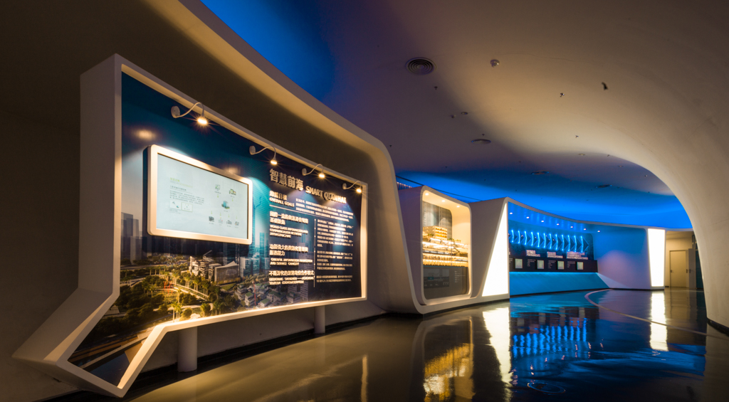 前海展示廳通過極具張力內(nèi)部空間將建筑的設(shè)計語言向外迸發(fā),對規(guī)整的建筑輪廓用開放與擴張的設(shè)計手法來體現(xiàn)前海的突破。建筑設(shè)計理念契合前海的氣質(zhì),寓意前海從內(nèi)向外的體制改革,展示廳的每一分細節(jié)都體現(xiàn)著科技與未來的美感。