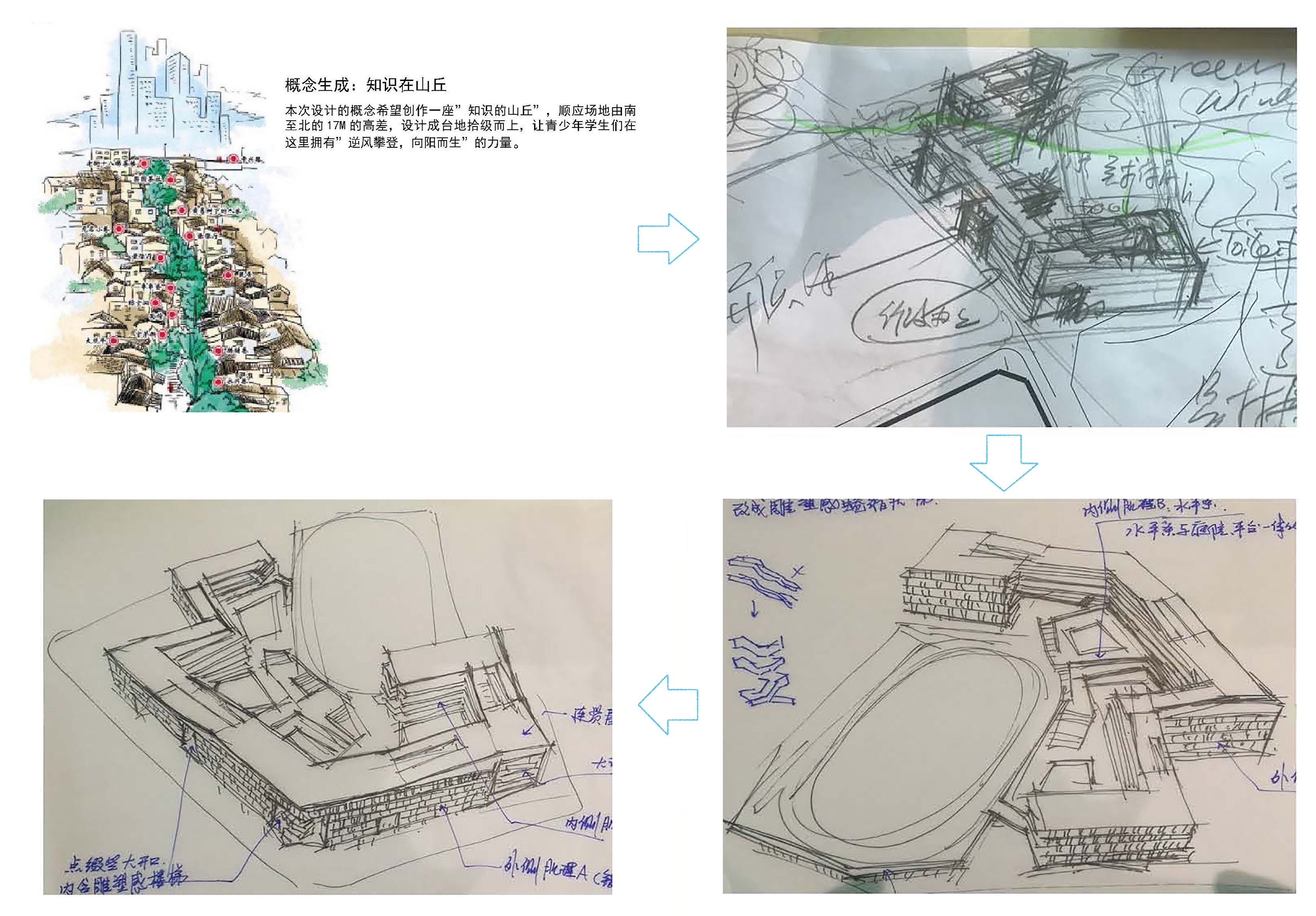 “書山有路勤為徑,學海無涯苦作舟”,求學之路道阻且難,每一位學子都須要傾其十余年心血,方能在學業(yè)上有所小成。我司深圳龍勝學校建筑方案以“知識的山丘”設計概念,將求學的攀登之路與項目的地形地貌相結合,為學校創(chuàng)作了一個寓理于景的立體式校園設計方案,以期展現(xiàn)莘莘學子勤勉求學的畫卷。