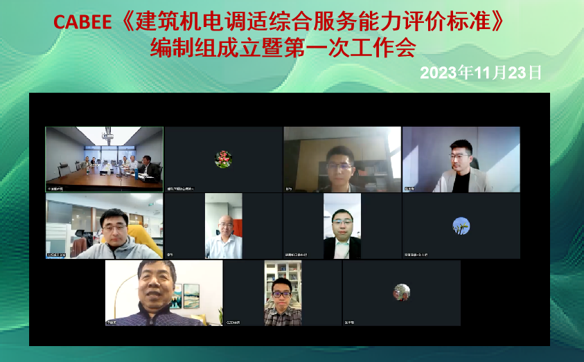 2023年11月23日,中國建筑科學(xué)研究院有限公司牽頭編制的中國建筑節(jié)能協(xié)會(huì)團(tuán)體標(biāo)準(zhǔn)《建筑機(jī)電調(diào)適綜合服務(wù)能力評(píng)價(jià)標(biāo)準(zhǔn)》編制組成立暨第一次工作會(huì)在線上召開。中國建筑節(jié)能協(xié)會(huì)李德英副會(huì)長、臧凌云高級(jí)工程師,中國建筑科學(xué)研究院有限公司深圳分公司何春凱副總經(jīng)理,中國建筑節(jié)能協(xié)會(huì)調(diào)適運(yùn)維專委會(huì)逄秀鋒秘書長,《建筑機(jī)電調(diào)適綜合服務(wù)能力評(píng)價(jià)標(biāo)準(zhǔn)》編委共15位專家參加了會(huì)議。標(biāo)準(zhǔn)編制組成立會(huì)議由中國建筑節(jié)能協(xié)會(huì)標(biāo)準(zhǔn)化管理辦公室臧凌云高級(jí)工程師主持。中國建筑節(jié)能協(xié)會(huì)李德英副會(huì)長致辭,安排部署團(tuán)體標(biāo)準(zhǔn) 《建筑機(jī)電調(diào)適綜合服務(wù)能力評(píng)價(jià)標(biāo)準(zhǔn)》 編制啟動(dòng)的相關(guān)要求。